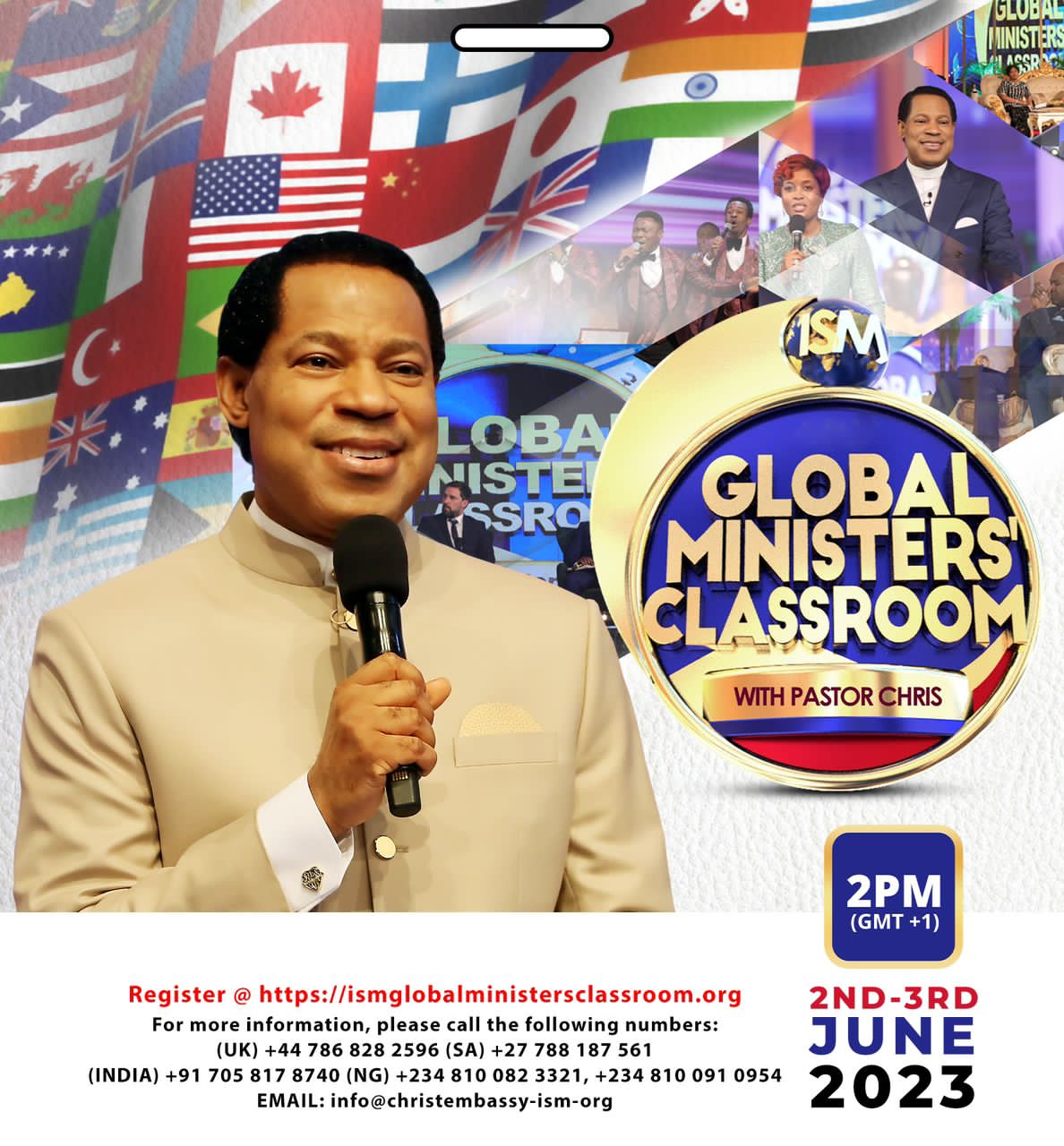 According to Mr. Olajide Babasola, Media Manager of the International School of Ministry arm of Loveworld Incorporated, organizers of the historic event, “it is going to be an awesome experience at the Global Ministers Classroom with Pastor Chris and to participate actively, invitees are encouraged to follow the instructions on this link http://www.ismglobalministersclassroom.org/v/ISMGlobalMinistersCell”.