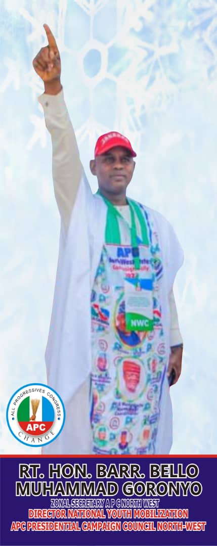 The zonal Secretary North West of the All Progressives Congress (APC) Rt.Hon. Barr. Bello Muhammad Goronyo has urged the youths on the need for them to come out enmass to vote for for the candidates of the party during the Governorship and states Houses of Assembly elections scheduled for the 18th, March 2023.